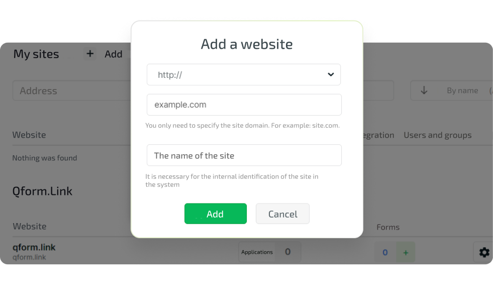 Register with QForm and add a site where the form will be