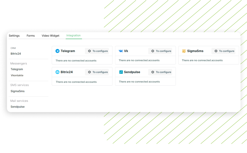 Connect CRM or mailing service in the Integration section to export contacts for future mailings