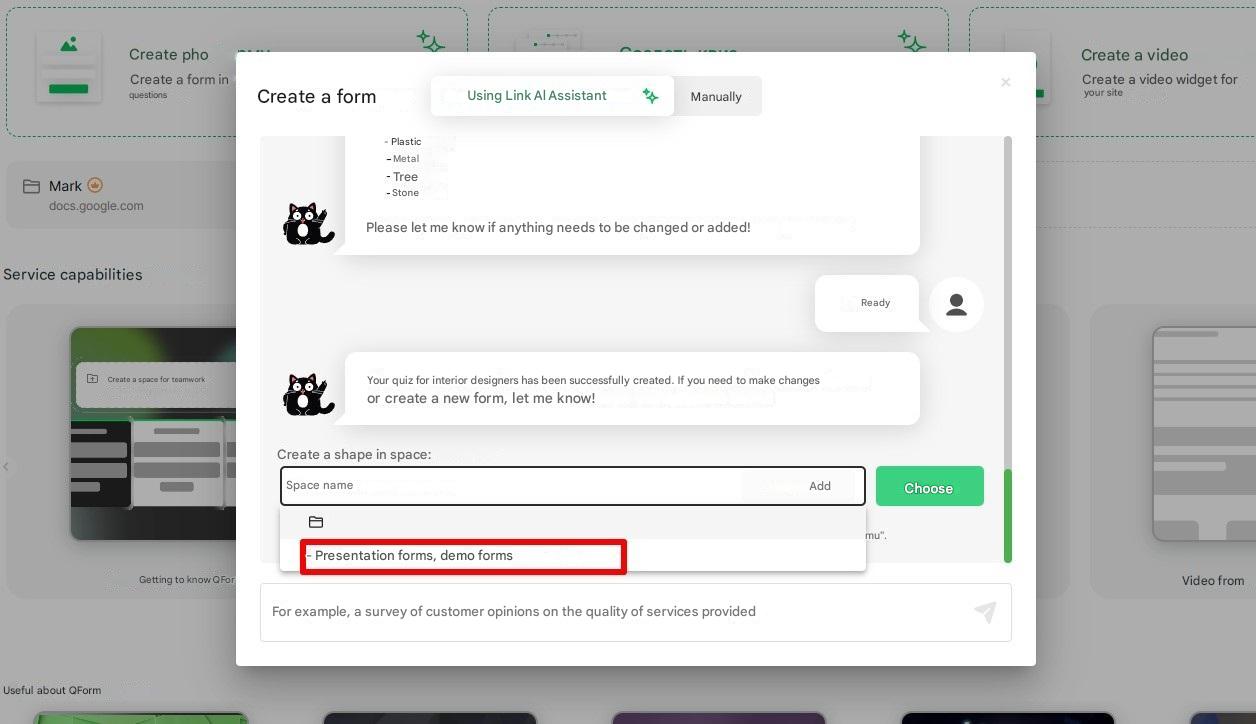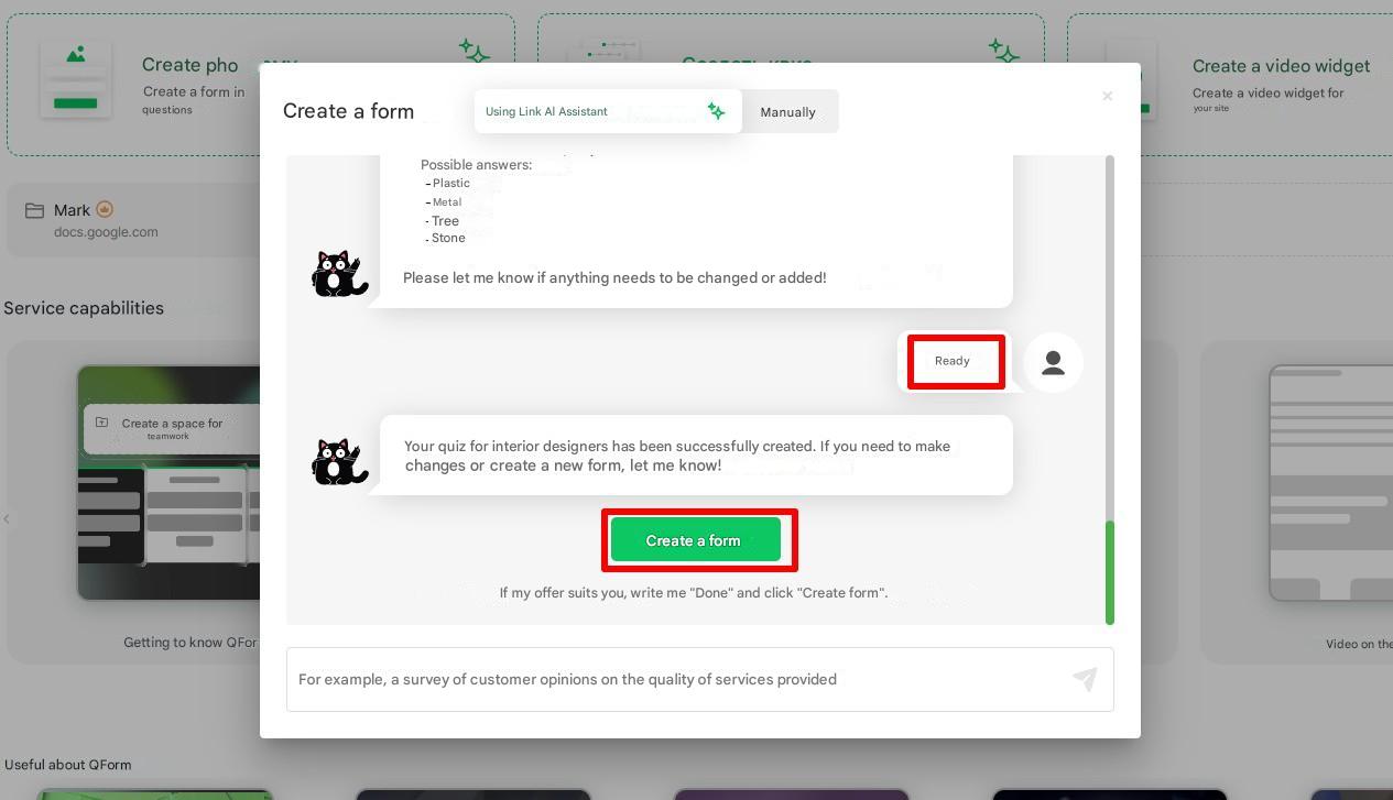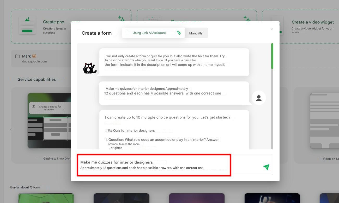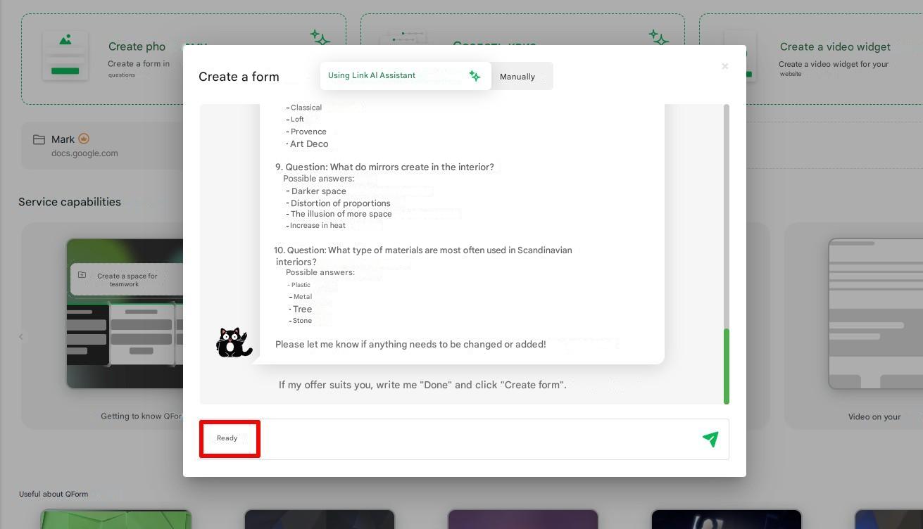 Creating forms has become easier and faster with the help of our AI assistant Link Al Assistant. Describe the task and it will think through all the details: form fields, their content, call to action (CTA).