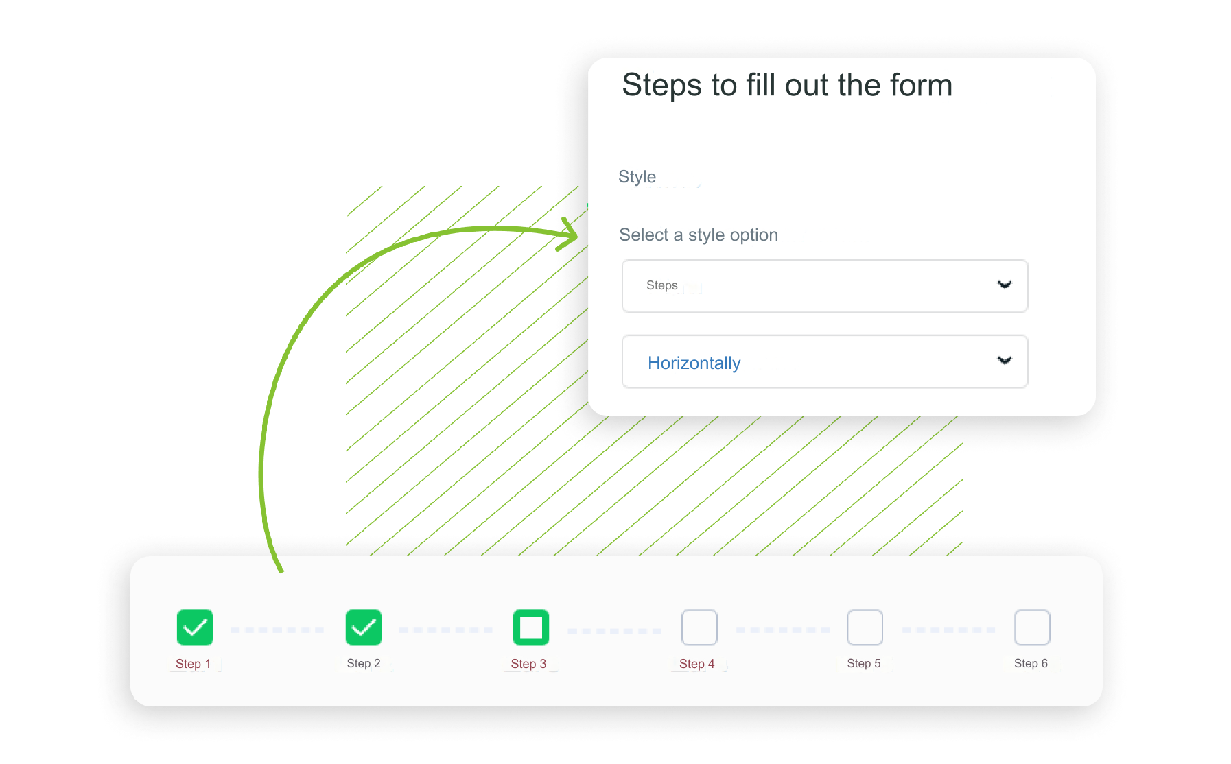 Go to design mode, add and configure the required field types. To get a step-by-step form, create a separate section for each step