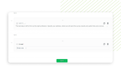 The quiz is perfect for promoting training courses, where after choosing the “ideal specialty” the client can be offered an appropriate course
